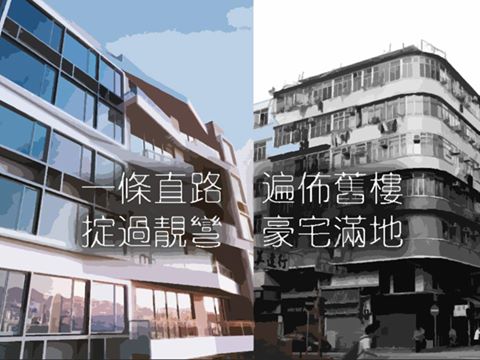 我唔在意豪宅嘅人點望住推舊樓;只係心酸舊樓嘅人點面對幢豪宅。